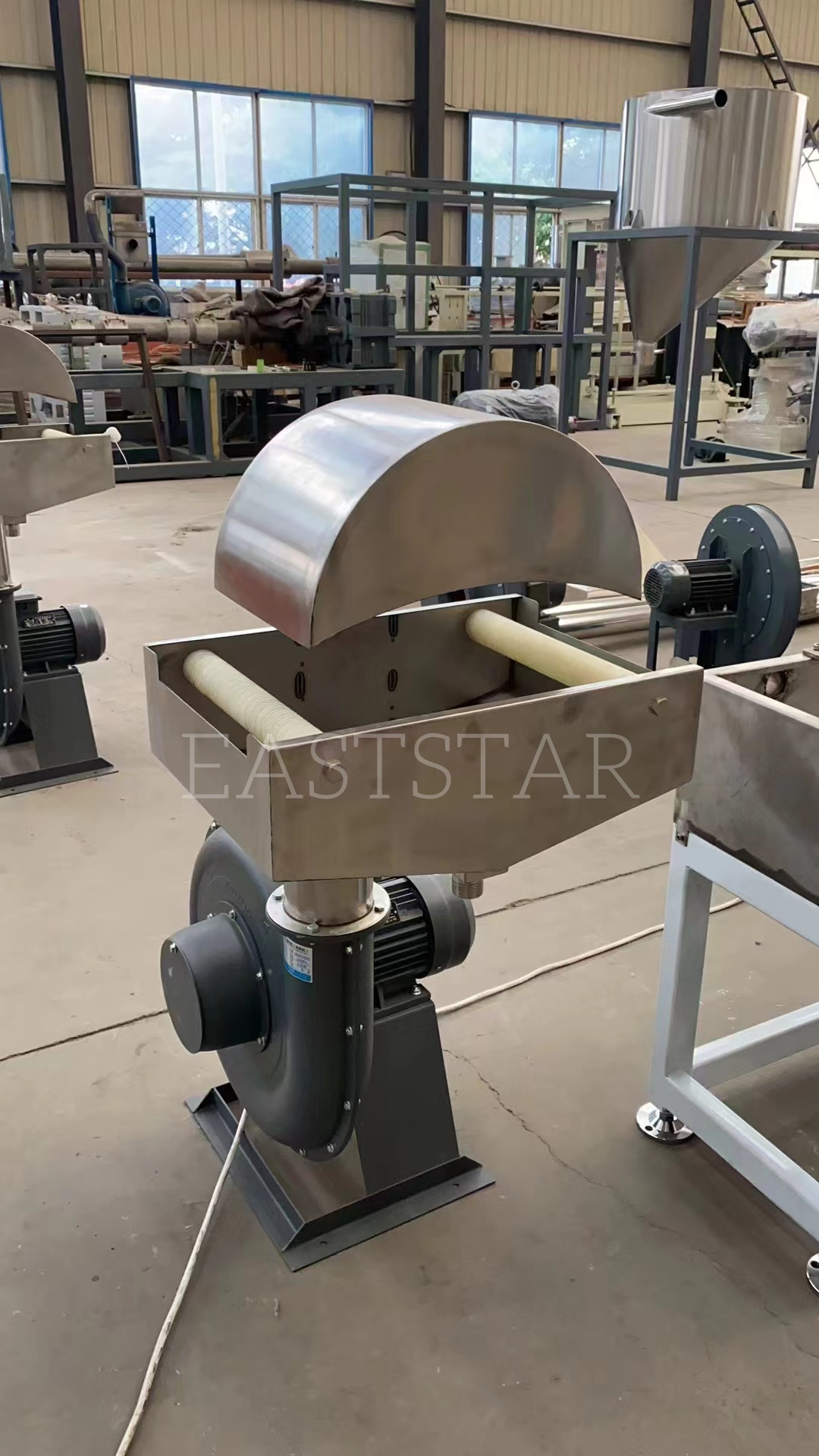 দসমান্তরাল টুইন-স্ক্রু গ্রানুলেটর2.2kW শক্তি এবং 17:1 গতির অনুপাত সহ একটি ডুয়াল-সর্পিল মিটারিং ফিডার অন্তর্ভুক্ত করে, সামঞ্জস্যপূর্ণ উপাদান খাওয়ানো নিশ্চিত করে। কাটিং বিভাগের জন্য, প্লাস্টিক গ্রানুলেশন সিস্টেম 2.8 মিমি ব্যাসের 72 ছিদ্র সহ একটি হট-কাট টেমপ্লেট ব্যবহার করে, যা র্যাপিয়ার সমাবেশে চারটি কাটিং ব্লেড দ্বারা পরিপূরক। দুটি উচ্চ-চাপ ব্লোয়ার (5.5kW এবং 4kW) দক্ষতার সাথে স্টেইনলেস স্টীল পাইপিং এর মাধ্যমে পৃথকীকরণ এবং সংগ্রহ ব্যবস্থায় ছোরা পরিবহন করে।