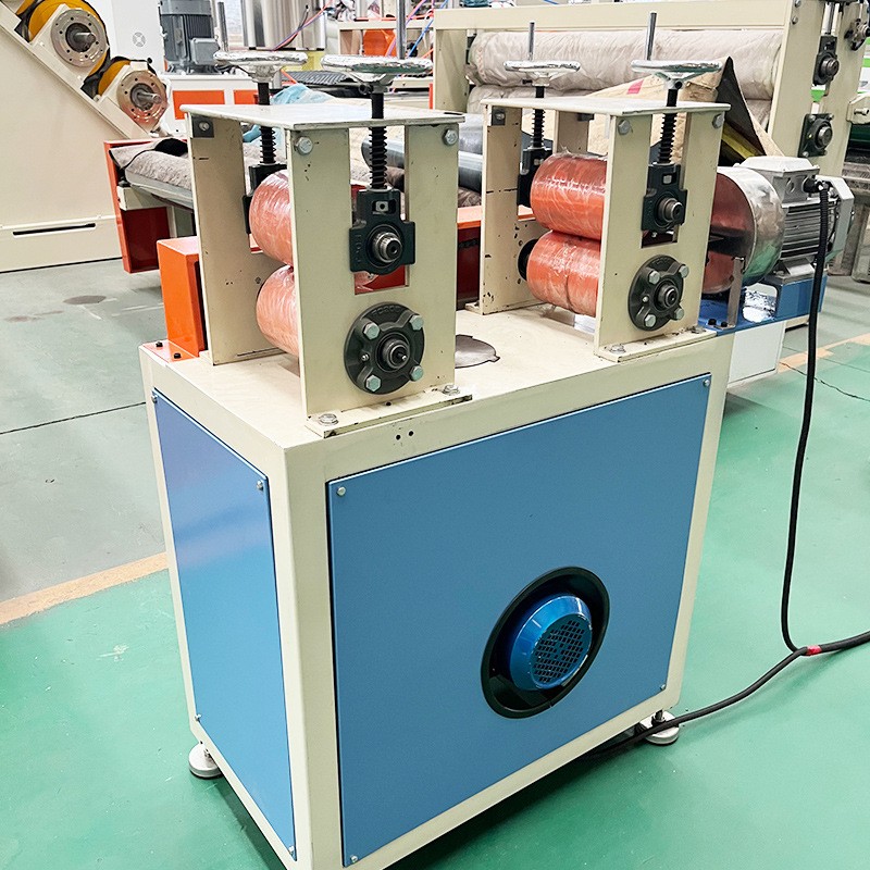 পিই ব্যাগ এজ স্ট্রিপ এক্সট্রুশন মেশিনের মধ্যে রয়েছে একক স্ক্রু কম্প্রেসার - মেশিন হেড মোল্ড - ভ্যাকুয়াম শেপিং গুদাম - ট্র্যাকশন ট্র্যাক্টর - উইন্ডিং