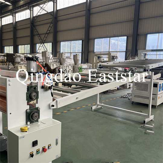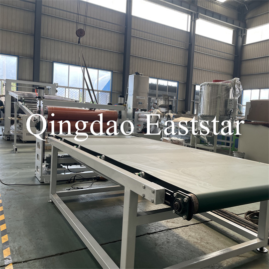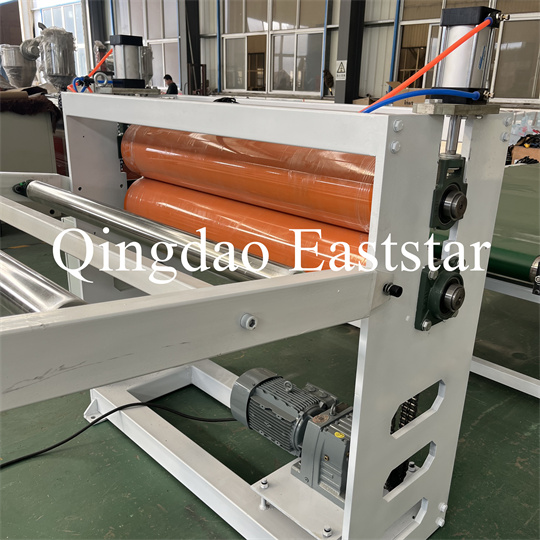 বন্ধনী, একটি রাবার রোলার ট্র্যাকশন মেশিন, একটি শিয়ারিং মেশিন এবং একটি কনভেয়র বেল্ট ডিভাইস। পিভিসি অ্যান্টি-স্কিড প্লেট এক্সট্রুডার সরঞ্জাম, পণ্যের প্রস্থ