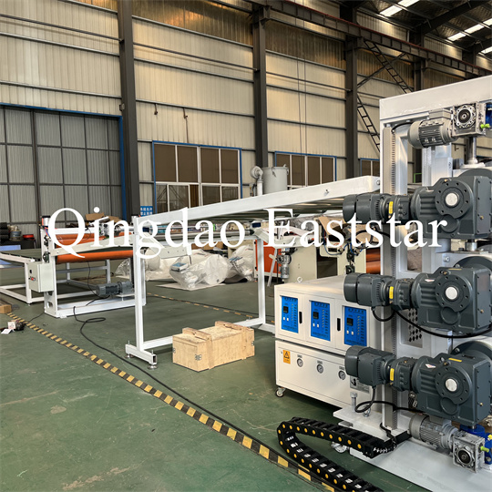 নরম পিভিসি অ্যান্টি-স্কিড প্লেট এক্সট্রুডার সরঞ্জাম: সরঞ্জামগুলিতে প্রধানত একটি একক-স্ক্রু এক্সট্রুডার, একটি তিন-রোলার ক্যালেন্ডার, একটি 6-মিটার কুলিং থাকে