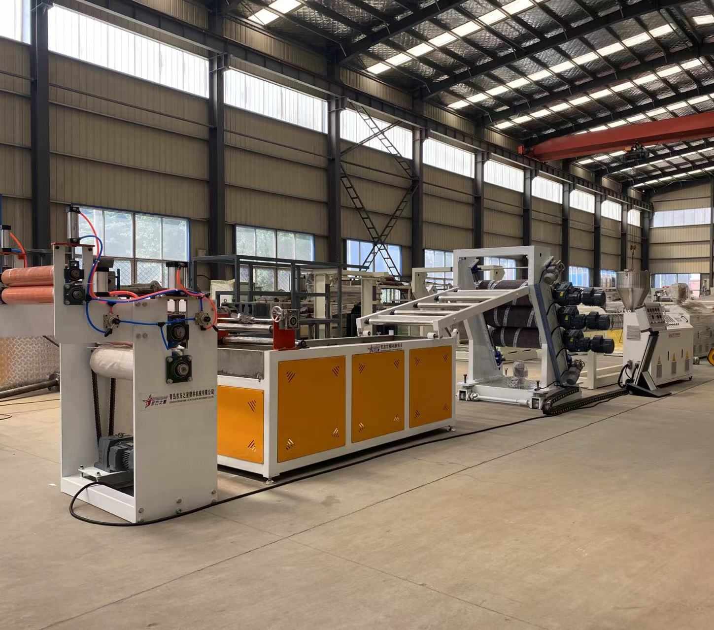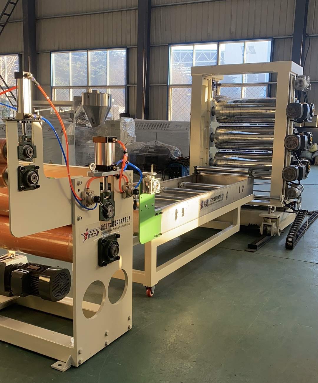 পিভিসি স্বচ্ছ নরম দরজার পর্দাগুলির জন্য উত্পাদন লাইন: 200 থেকে 600 মিলিমিটার প্রস্থ এবং 0.8 থেকে 3 মিলিমিটার পুরুত্ব সহ পিভিসি স্বচ্ছ প্লাস্টিক শীট উত্পাদন করতে সক্ষম। সরঞ্জামগুলির মধ্যে রয়েছে একটি SJ90 বা SJ-120 একক-স্ক্রু এক্সট্রুডার, একটি সামঞ্জস্যযোগ্য T-আকৃতির নমনীয় ডাই, একটি উল্লম্ব বা 45-ডিগ্রি বাঁকানো থ্রি-রোলার ক্যালেন্ডার, একটি থ্রি-ইন-ওয়ান ওয়াটার টেম্পারেচার কন্ট্রোলার, একটি স্টেইনলেস স্টীল কুলিং ব্র্যাকেট এবং একটি প্রশস্ত-প্রস্থ কে-মিমি অ্যাডজাস্টেবল মেশিন, ট্রাই-রোল, ট্রাই-রোল মেশিন। একটি দ্বৈত-অবস্থানের বায়ু-প্রসারণকারী খাদ উইন্ডার। উত্পাদিত শীটগুলির একটি চকচকে পৃষ্ঠ, উচ্চ স্বচ্ছতা, কোমলতা, কোন ফাটল নেই, কোন গন্ধ নেই, কোন বুদবুদ নেই এবং এটি নমনীয়, ঠান্ডা-প্রতিরোধী, পরিধান-প্রতিরোধী, অ্যাসিড-ক্ষার-প্রতিরোধী এবং জারা-প্রতিরোধী।