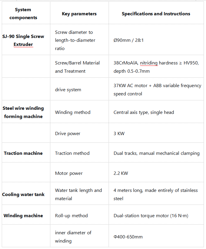 স্বয়ংক্রিয় ইন্টিগ্রেশন, উচ্চতর দক্ষতা: ইস্পাত তারের উইন্ডিং, পিভিসি এক্সট্রুশন লেপ, জল কুলিং, ট্র্যাকশন থেকে ডুয়াল-স্টেশন স্বয়ংক্রিয় উইন্ডিং, পুরো লাইনটি স্বয়ংক্রিয়ভাবে কাজ করে, উল্লেখযোগ্যভাবে উত্পাদন দক্ষতা উন্নত করে এবং শ্রম ব্যয় হ্রাস করে।