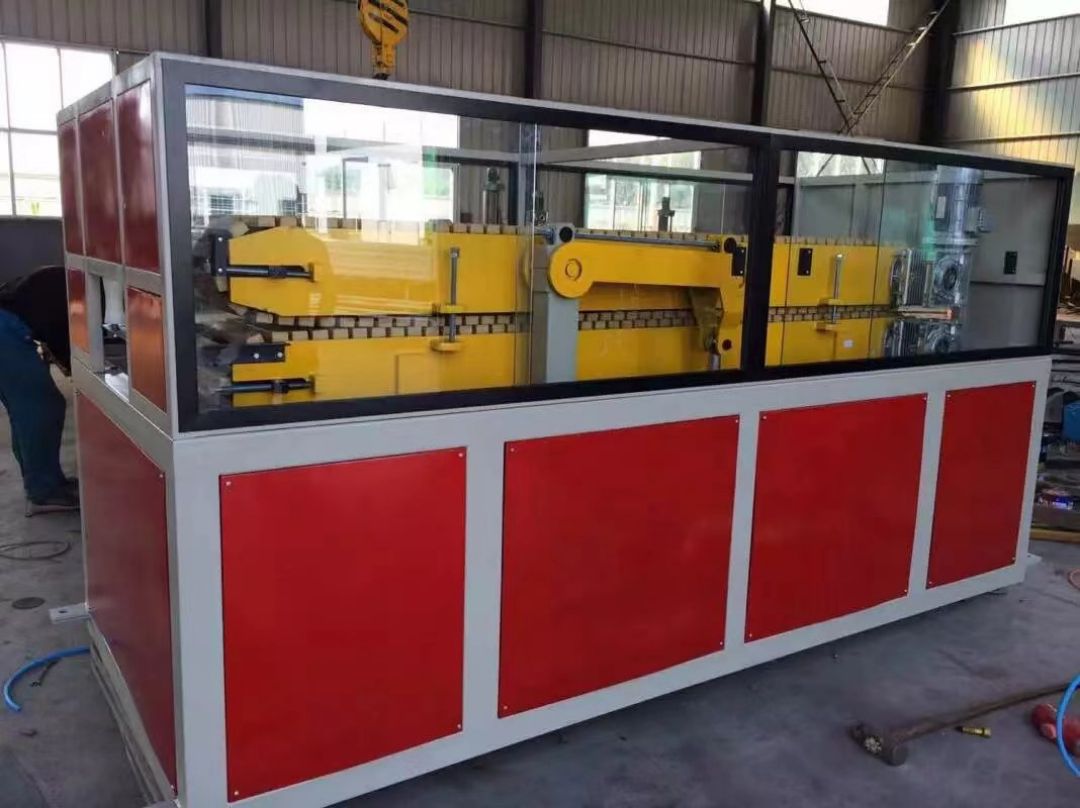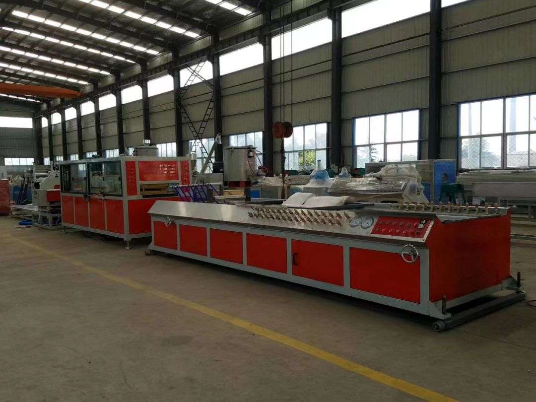 পিভিসি প্রাচীর প্যানেল উত্পাদন লাইন প্রধানত একটি শঙ্কুযুক্ত টুইন-স্ক্রু এক্সট্রুডার, একটি ভ্যাকুয়াম শেপিং টেবিল, একটি ট্র্যাক্টর, একটি কাটিং মেশিন এবং একটি উপাদান গ্রহণকারী র্যাক দ্বারা গঠিত।