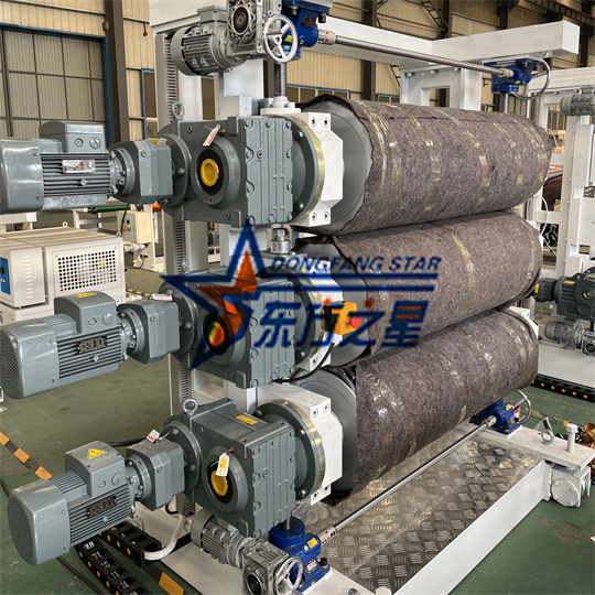 সফট পিভিসি শীট এক্সট্রুডার মেশিন টার্টল প্যাটার্ন মেশিনের সবচেয়ে গুরুত্বপূর্ণ অংশ হল তিন-রোলার ফর্মিং মেশিন, যার মাঝখানে দুটি মসৃণ রোলার এবং একটি কচ্ছপের শেল রোলার রয়েছে। কচ্ছপের শেল রোলারের প্রক্রিয়াকরণ পদ্ধতির মধ্যে রয়েছে: রুক্ষ বাঁক, গতিশীল ভারসাম্য, সূক্ষ্ম বাঁক, ইলেক্ট্রোপ্লেটিং, সূক্ষ্ম বাঁকানো, মিশ্রিত করা নাকাল রোলার খোদাই করার সময় অপেক্ষাকৃত দীর্ঘ, তাই পুরো সরঞ্জামের ডেলিভারি চক্র অপেক্ষাকৃত দীর্ঘ। কচ্ছপের শেল সরঞ্জামগুলিকে প্রক্রিয়াকরণ এবং কাস্টমাইজ করতে হবে এমন নির্মাতাদের অবশ্যই আগে থেকে অর্ডার দিতে হবে।