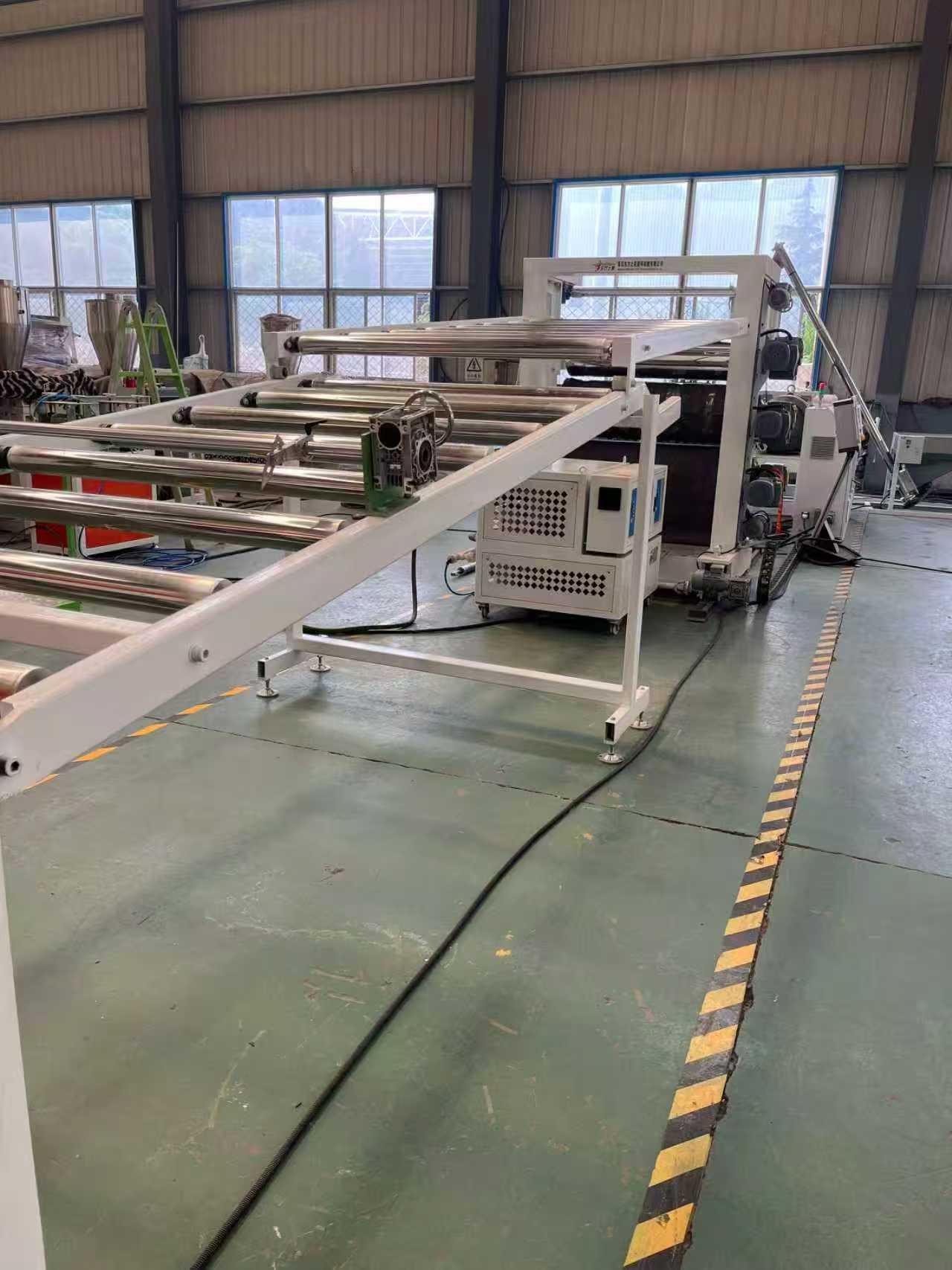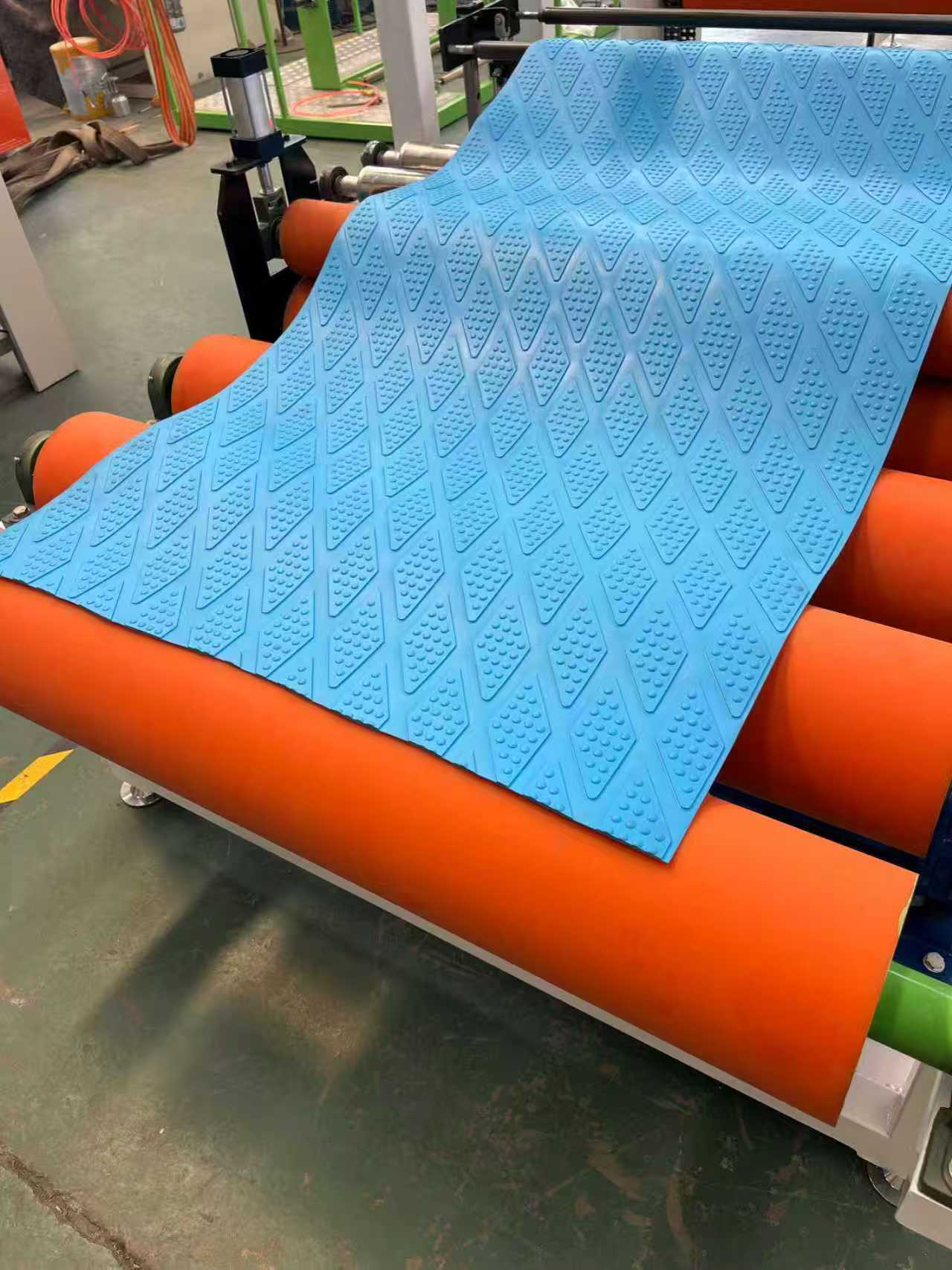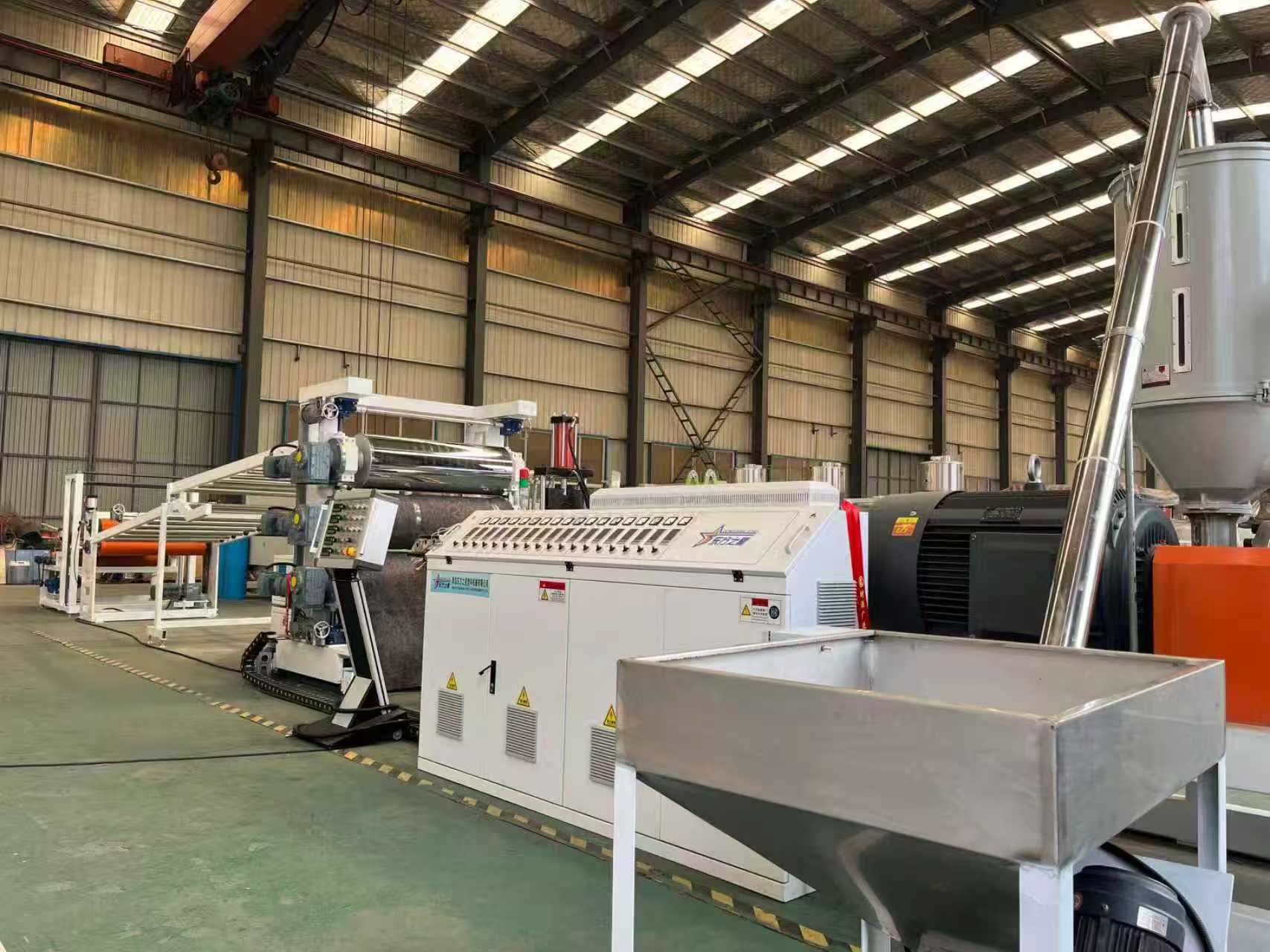 TPE-1000mm অ্যান্টি-স্লিপ ম্যাট সরঞ্জাম গাড়ির ফ্লোর ম্যাট: সরঞ্জামগুলিতে প্রধানত একটি একক-স্ক্রু এক্সট্রুডার, একটি তিন-রোলার ক্যালেন্ডার, একটি 6-মিটার কুলিং বন্ধনী, একটি রাবার রোলার ট্র্যাকশন মেশিন, একটি শিয়ারিং মেশিন এবং একটি কনভেয়ার বেল্ট ডিভাইস থাকে।