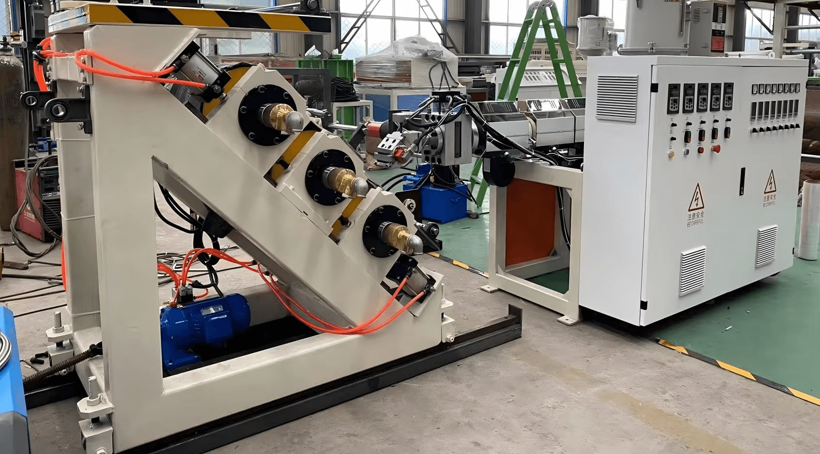 TPE একক স্ক্রু নন-ওভেন কম্পোজিট কো-এক্সট্রুশন ওয়াটারস্টপ প্রোডাকশন ইকুইপমেন্ট হাইড্রোলিক, টানেল এবং অন্যান্য প্রকৌশল প্রকল্পে ওয়াটারপ্রুফিংয়ের জন্য উচ্চ-শক্তি, জারা-প্রতিরোধী পলিয়েস্টার (PET) ওয়াটারস্টপ তৈরি করতে উচ্চ-দক্ষ এক্সট্রুশন প্রযুক্তি ব্যবহার করে। সরঞ্জামগুলি স্বয়ংক্রিয় নিয়ন্ত্রণের সাথে সুনির্দিষ্ট মাত্রা এবং দুর্দান্ত সিলিং কার্যকারিতা নিশ্চিত করে, কাস্টমাইজড উত্পাদন সমর্থন করে।